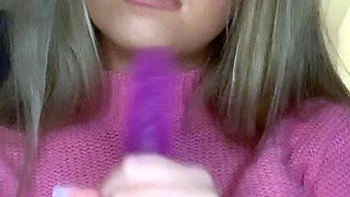 Blonde tight pussy babe solo toy fun in glamour masturbation